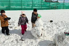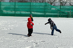 1、2年生が生活科の学習で雪遊びをしました。雪だるまを作ったり、雪合戦をしたり、雪の上に寝転んだり、みんな思い思いに雪を楽しんでいました。天気にも恵まれてよかったです。