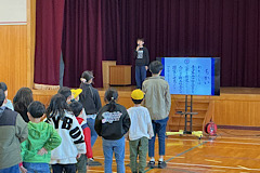 本日、4時間目にスマイル集会並びにJRC登録式を行いました。スマイル集会では、新1年生を迎えて、互いに自己紹介をしたり一緒にゲームを楽しんだりしました。続いて行われたJRC登録式では、JRCの意義について説明を聞くとともに、青少年赤十字の唄、誓いの言葉の唱和など行いました。1年生も今日からJRCの仲間入りです。