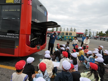 10月21日(火)3年生が総合の授業で、「立仏をもっと知ろう」の一環で新潟交通西部営業所を訪問いたしました。