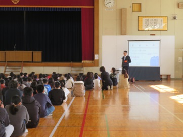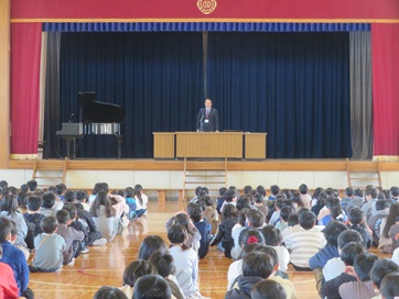 その後、書初め大会などの表彰があり、最後に春休みの生活についてお話を聞きました。