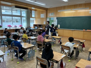 1年生は、スタートカリキュラムでゆるゆると。お話を見たり、じゃんけん列車をしたりして楽しく過ごします。他の学年は、学習がスタートしました。