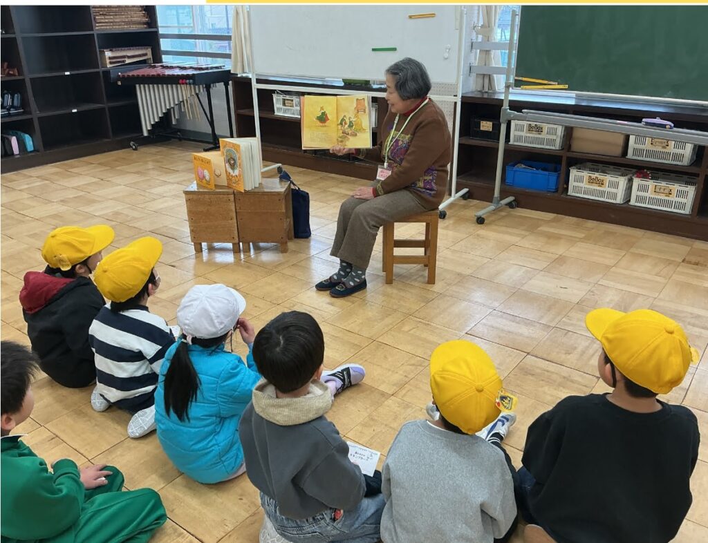 月に2回、お昼休みにボランティアの横田さんが、本の読み聞かせをしてくださいます。 横田さんが選ばれる本はどれも、次世代に語り継がれる素敵な本ばかりです。