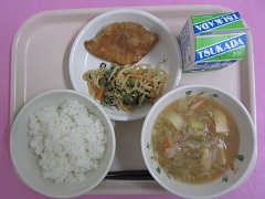 ☆本日のメニュー・ごはん・野菜汁・白身魚のたつた揚げ・切干大根のナムル・牛乳 【新潟市の食材】米・ごぼう・長ねぎ・小松菜【新潟県の食材】牛乳・もやし【その他】   にんじん・じゃがいも(北海道)