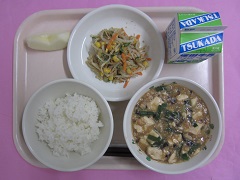 ☆本日のメニュー・ごはん・マーボー豆腐・もやしのごまドレッシングあえ・りんご・牛乳 【新潟市の食材】米・きゅうり・長ねぎ【新潟県の食材】牛乳・豚肉・もやし【その他】   にんじん(北海道) ニラ( …