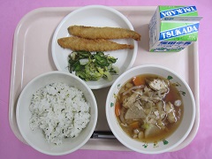 ☆本日のメニュー・菜めし・鶏ごぼう汁・ししゃもフライ・はくさい漬け・牛乳 【新潟市の食材】米・だいこん・長ねぎ・きゅうり【新潟県の食材】牛乳・ごぼう【その他】 にんじん(北海道) はくさい(茨 …