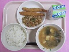 ☆本日のメニュー・ごはん・新じゃがのみそ汁・ししゃもフライ・切干大根の焼きそばソース炒め・牛乳 【新潟市の食材】米・長ねぎ・小松菜【新潟県の食材】牛乳・豚肉・えのき・もやし・にんじん【その他】 …
