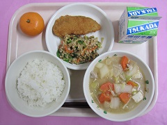 ・パインパン・もずくスープ・鮭チーズフライ・アーモンドキャベツ・牛乳