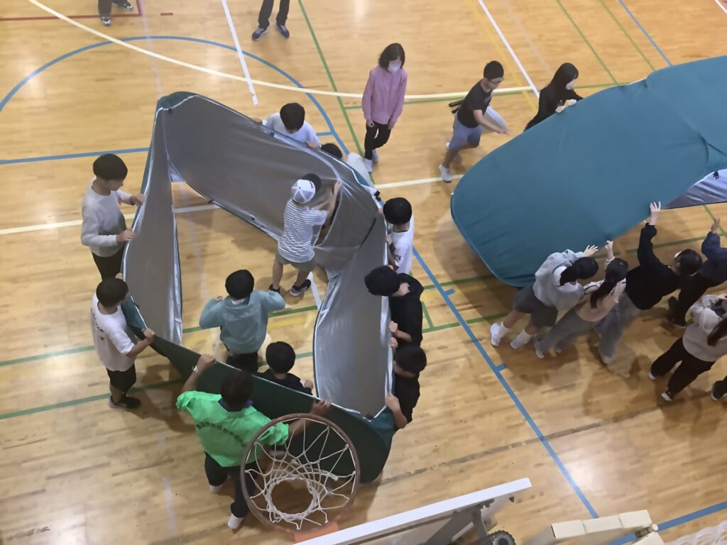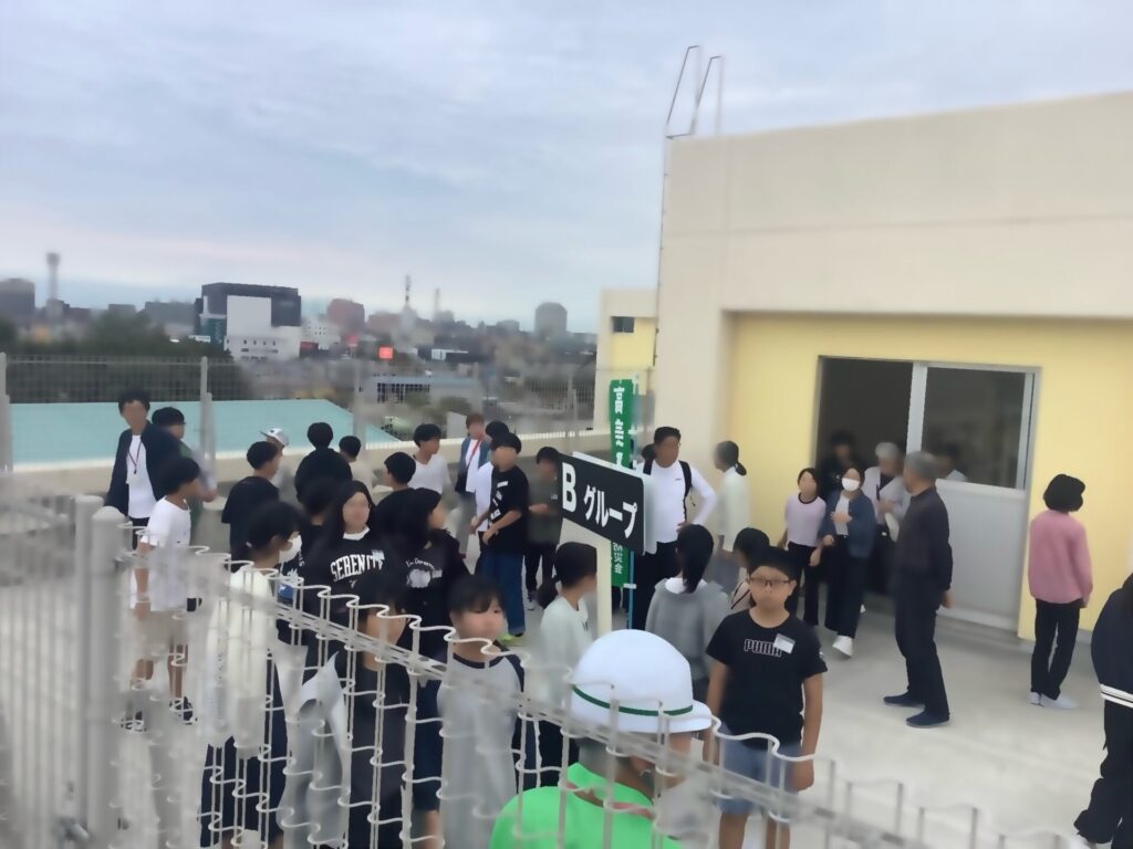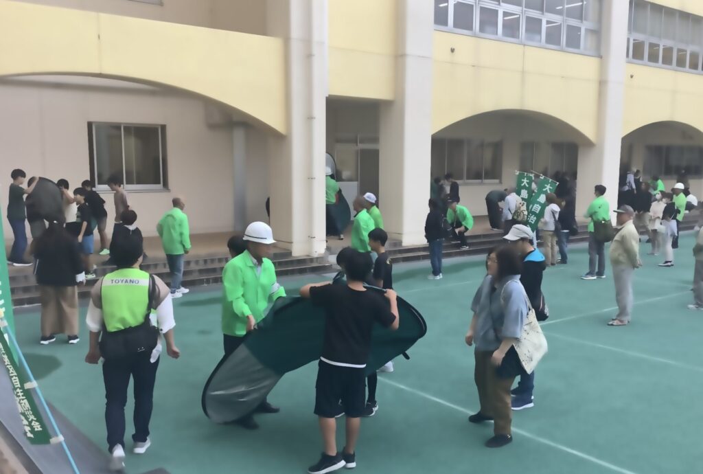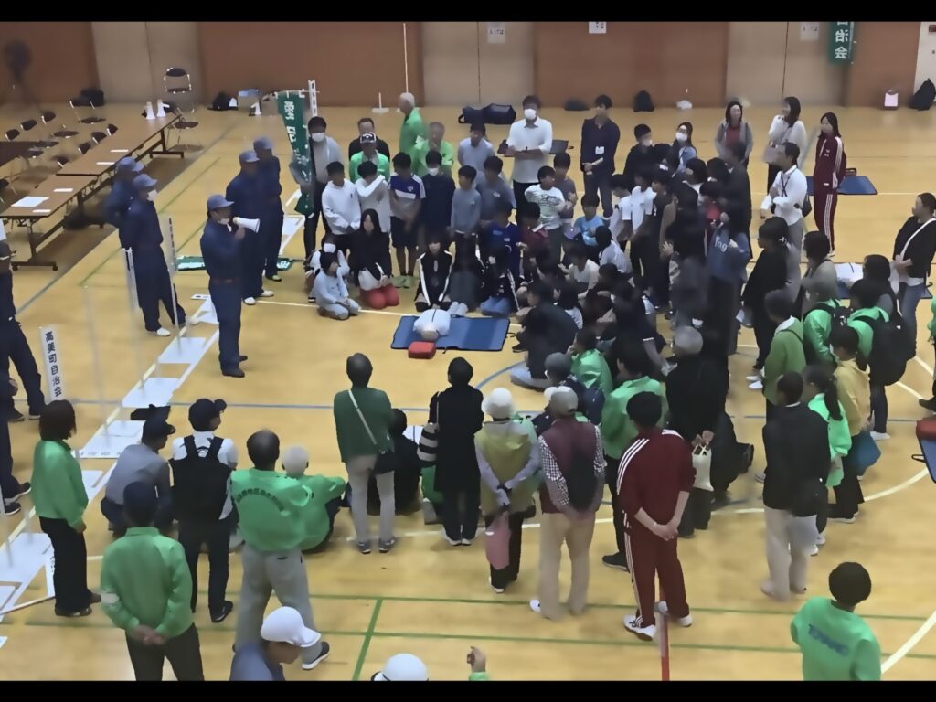 ③地域自主防災訓練 … 6年生が参加。(AED体験・非常トイレの組立・避難所内パーテーションの組立・津波想定の屋上への避難など)