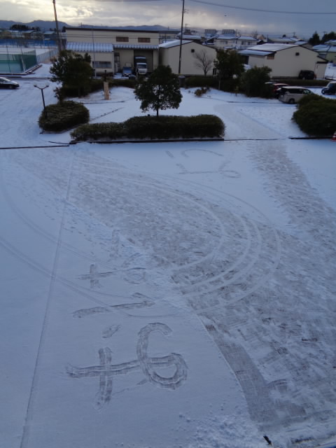 街を白く覆った今朝の雪。玄関先にはやさしいメッセージが… あいさつ運動をしていた生徒たちから、元気に登校した全校のみなさんへ。 空気は冷え込んでも、こころはほっこり。 ありがとう。