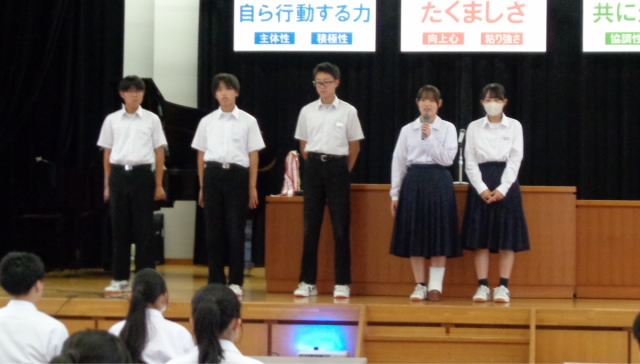 放課後は躍進会企画のリハーサルを行いました。ダンスの練習では、衣装を着てノリノリで踊っていました。明日は、ふだんの学校生活とは違う一面が見られそうです。(ネタバレ防止のため、写真にぼかしを入れています)