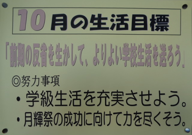 学校としては、1年間の折り返しを迎える月です。生徒のみなさん、まずは4月からの半年間の取組を振り返って、自分自身の「成長」と「これから高めたいこと・伸ばしたいこと」を自分で捉えることが大切です。しっかりと済ませたうえで、後期をスタートさせましょう!