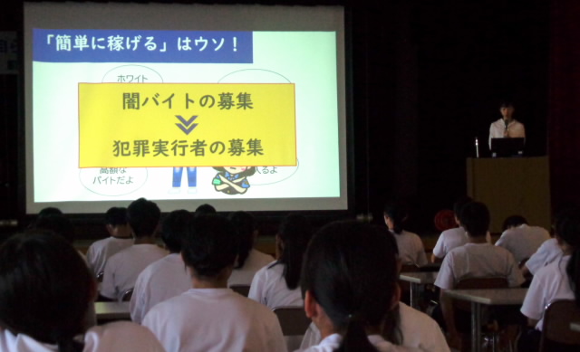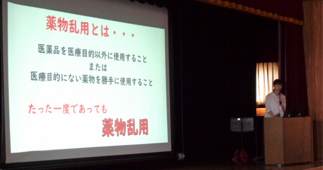 中原様からは、薬物乱用のきっかけにもなる「非行とは…」の話に始まり、「薬物、薬物乱用とは…」「薬物の種類や名称・隠語」「薬物乱用の怖さ・影響」「身近にある危険、危険への対処法」など、安全・安心な生活を送るために大切なことを、分かりやすい言葉で丁寧に教えていただきました。