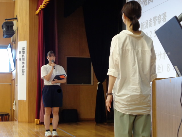 2日(木)6限に「薬物乱用防止教室」を開催しました。講師にお迎えしたのは、新潟県警察本部 生活安全部少年課 新潟少年サポートセンター 少年警察補導員の 中原 翠 様です。