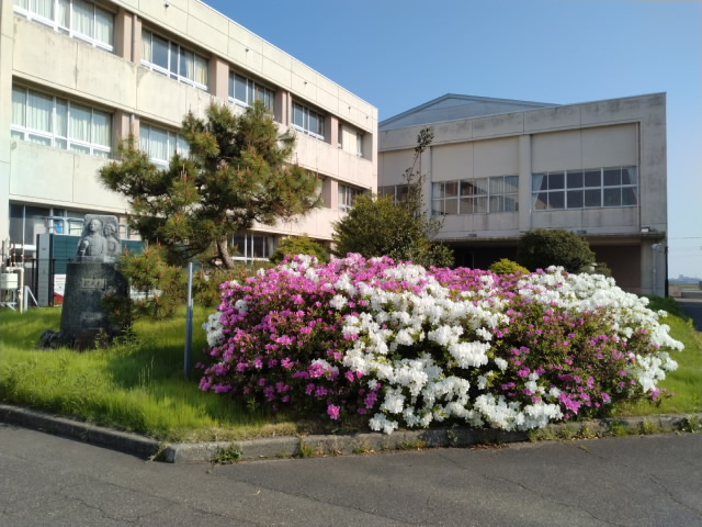 先人たちの思いの籠った碑を埋もれさせておくのは忍びないということで、躑躅には申し訳ないのですが、この度用務員さんにお願いして、植込みを整備してもらいました。