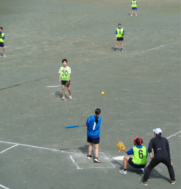 グラウンドでソフトボールのゲーム(保健体育)をしていました。楽しそうな声が響きます。
