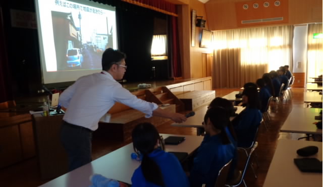 第1回の今日(5・6限)は、「地震に対して必要な備え」について、【自分(個人)・家庭】と【地域】の2つの立場から考えてみました。まずは、お話を伺っていきます。