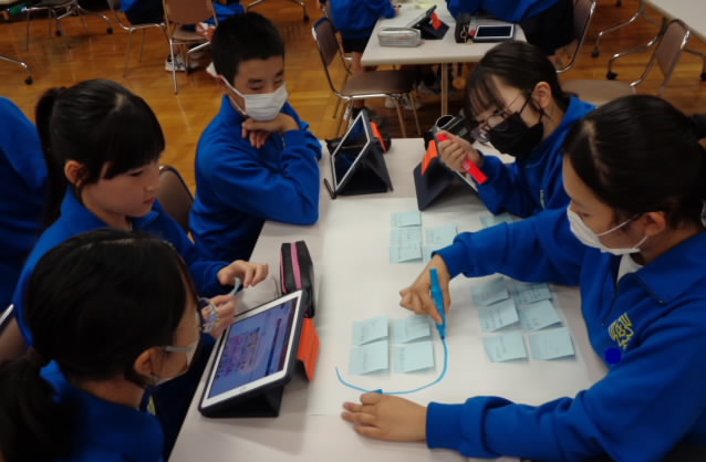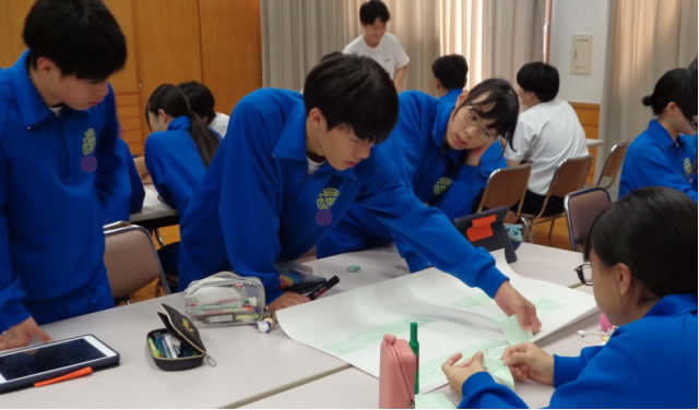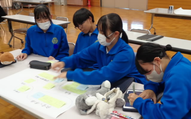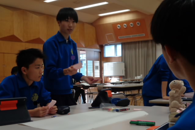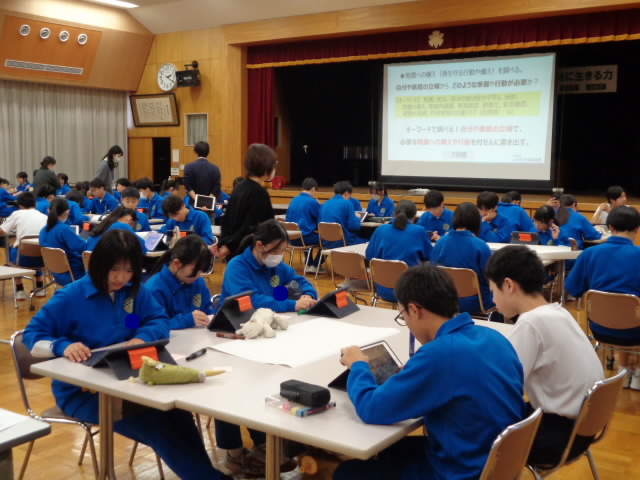 その後、学年ごとのグループワークを行いました。情報収集~グルーピング~ラベリングの過程を経ながら、地震への備えについてまとめていきます。