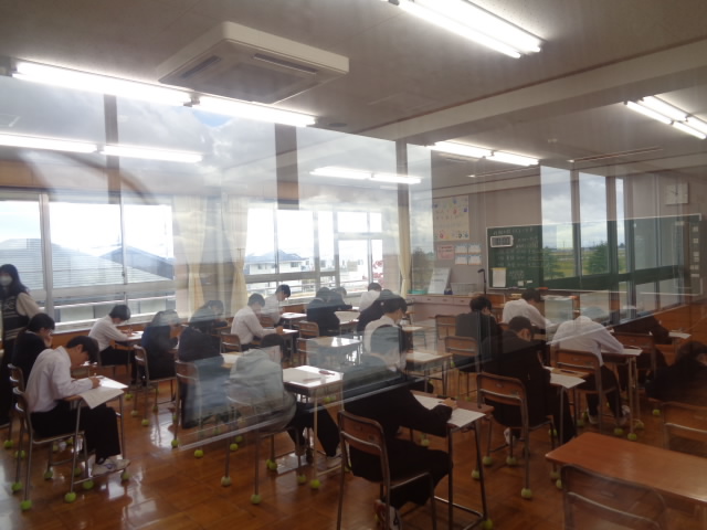今日明日の2日間、後期中間テストです。教室は、一生懸命問題に取り組む生徒の熱気にあふれていました。