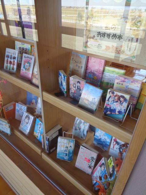 【ショーケースなどにも話題本やおすすめ本がズラリ!】