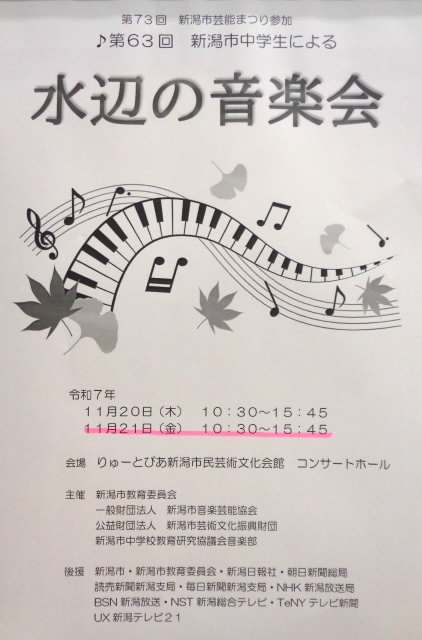 吹奏楽部、新体制で迎える初の大舞台。岩室中学校、巻東中学校のみなさんと心を合わせて、気持ちを込めて、精一杯演奏してきてください。応援しています!
