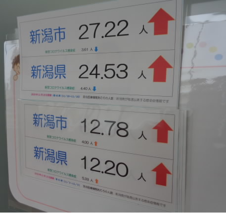 新潟県内各地でインフルエンザの感染が拡大、新潟市は県以上に大変なことになっています。国の示す基準を超えたため、県は昨日27日に警報を発令しました。ちなみに、前回・前々回の数値は…
