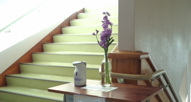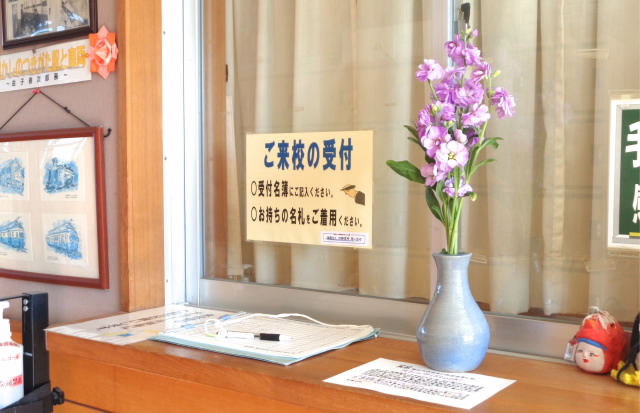 甘い香りと彩り豊かな花に心癒されます。花の紹介カードと一緒に、教室や玄関などに飾らせていただきました。