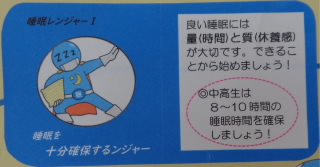 「良い睡眠には量(時間)と質(休養感)が大切です。できることから始めましょう!」の呼びかけとともに現れたⅠ~Ⅷ、8人の『睡眠レンジャー』たち。生徒たちが良い睡眠をとれるように、一人ひとりの生活実態に応じて、適切なアドバイスを与えてくれています。レンジャーを紹介しましょう。