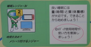 最初の掲示物は、各レンジャーのアドバイスを採用した生徒数を表すものでした。3年生が終わって2年生に移ったばかりとのことですが、今のところは「Ⅱ.寝る前は見ないンジャー」さんのアドバイスで、「寝る前のデジタル機器使用を控える」ことにした生徒が多いようです。みなさんはどうでしょうか?