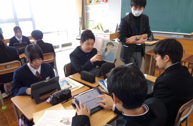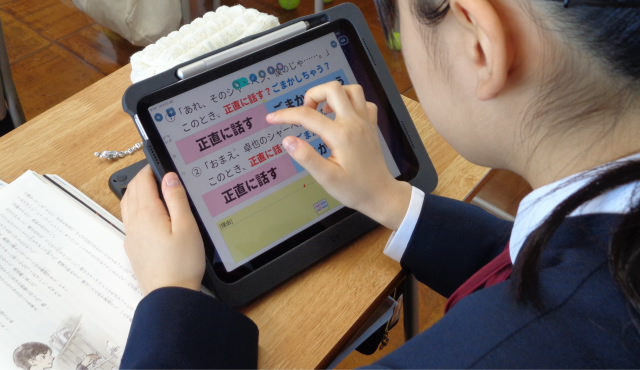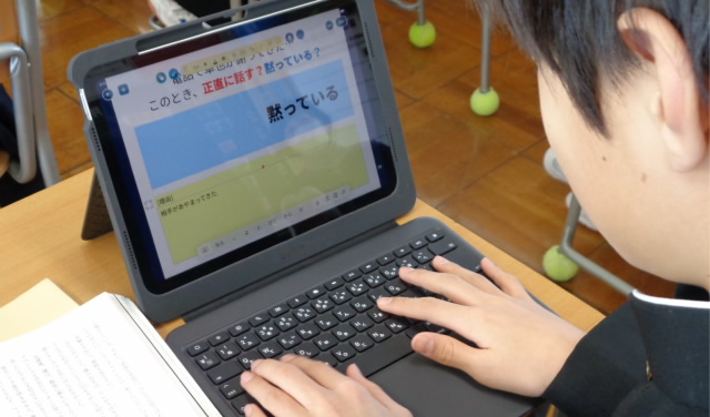 タブレット端末を活用してまとめた自分の考えを、クラスの仲間たちに伝えながら、より一層深めていきました。