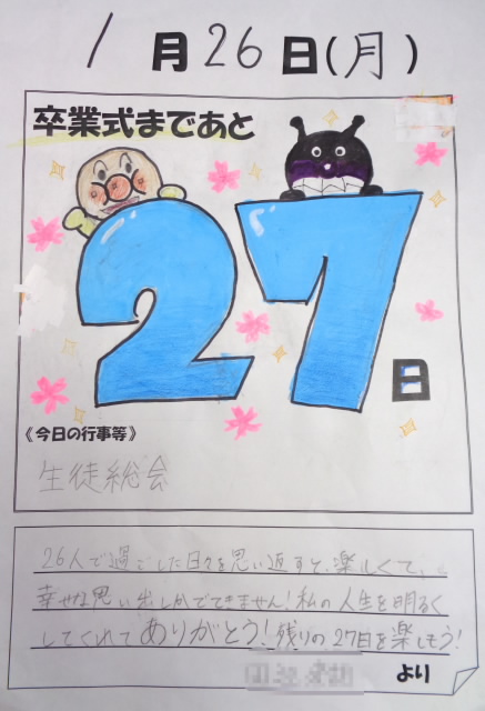 仲間へ、クラスへ、そして、月潟中学校での3年間の中学校生活への想いが伝わってきます。