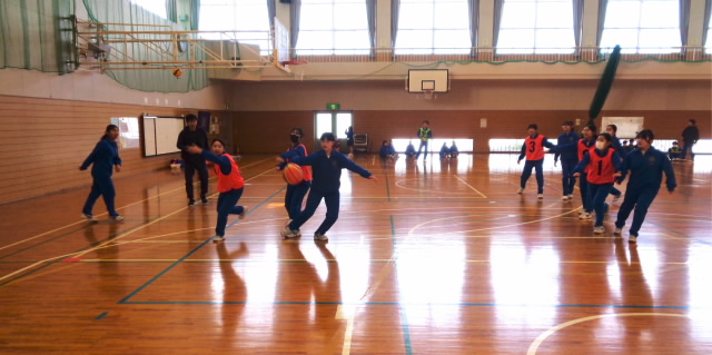 【2年生:また保健体育「バスケットボール」の様子ですみません。今日はフルコートでのゲーム。】