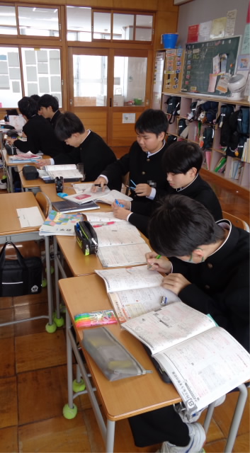 世間では「一年一度のチャンス」の「特別スペシャル・デー」を明日に控えた今日ですが、月潟中学校では1・2年生の定期テスト前最後の授業日でした。これまでの学習内容の整理・定着のために、みんな一生懸命テスト対策の追い込みをかけていました。