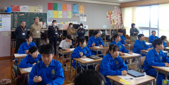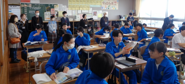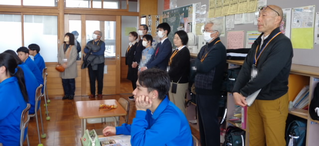 開会に先立ち、委員の皆様や月潟小学校教職員のみなさんに中学校の授業や校内の様子をご参観いただきました。