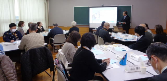 「後期学校評価 および 次年度学校運営方針について」小中両校校長が説明し、グループでの話し合い~質疑~協議を経て、最後に承認をいただきました。来年度教育活動の方向が定まりました。