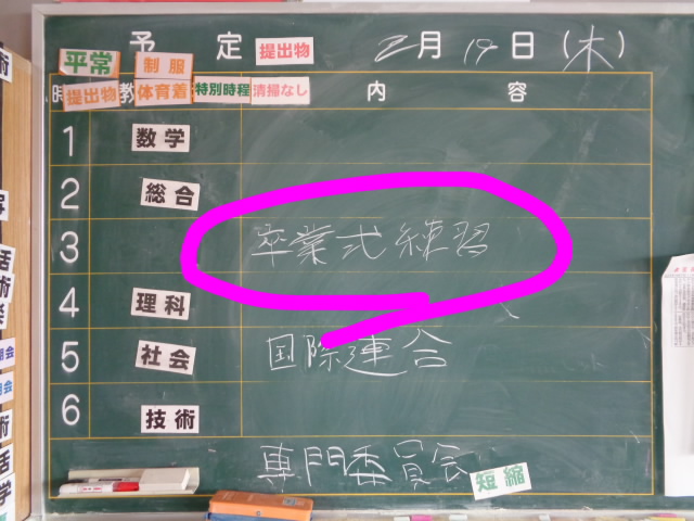 3月6日、立派な姿でこの学び舎を巣立ってください。学校を挙げてみなさんの門出をお祝いします。