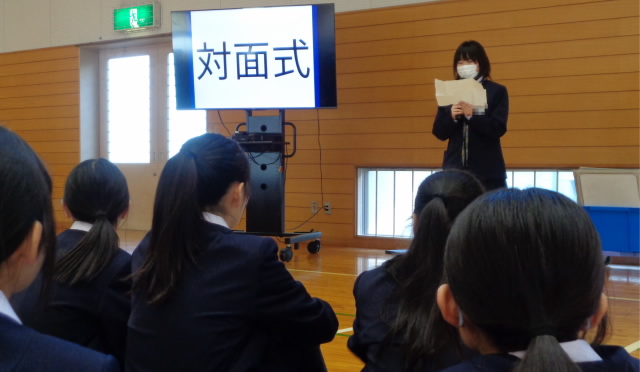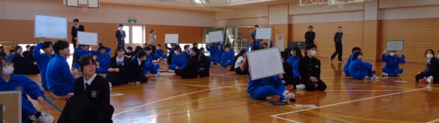 今日午後、躍進会「対面式」を行いました。単なる顔合わせではなく、躍進会活動について新入生に理解してもらい、今年度の活動の盛り上がりや充実につなげることを大きなねらいとしています。ところどころレクリエーションを盛り込んで、打ち解けたり交流を深めたりしながら、和やかな雰囲気で式は進んでいきました。