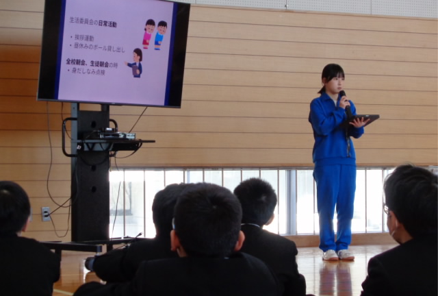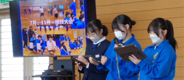 続いて、「躍進会」活動についての説明・紹介。躍進会活動全般~専門委員会~部活動の順で行いました。