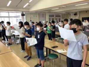 今日は月輝祭に向けて、5・6年生合同の合唱練習を行いました。 今日はビリーブを歌いました。 声がよく出ていて、当日の発表がとても楽しみになりました。