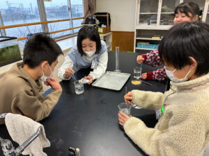 6年生の理科では、水溶液の性質の学習に入りました。 今日は5年生の学習を振り返り、水に砂糖や塩を溶かした水溶液を作る活動を行いました。 5年生の時に発見できなかった新たなことにも気づくことができ …