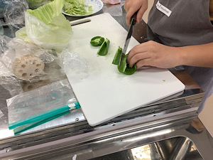 これまで家庭科で学習してきたことを生かして、おかずの一品を考えて調理の実習をしました。既存のメニューなどを参考にしながらペアで相談して事前に計画を立てました。包丁やレンジなどを使ってそれぞれの考え …