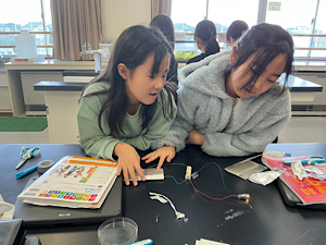 3年生と5年生の授業の様子を少し紹介します。 3年生は理科の学習で、ピカピカスイッチを作りました。 画用紙とアルミホイルでスイッチを作り、導線で豆電球を繋げて明かりがつくか試していました。 教科 …