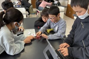 コンデンサーに電気をためて電球を光らせたり、モーターを動かしたりする実験を行いました。 手回し発電10回分でどれくらい長く動くかを確認しました。 LEDは3分以上光続け、子どもたちはとても驚いていま …