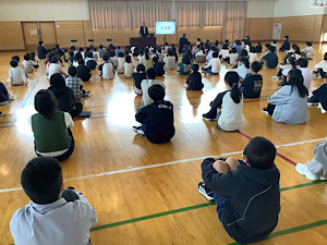 今日は1、2、3年生で「月潟おはなしの会」の方々による民話の語りがありました。
