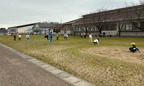 3月に入り校庭やグラウンドの雪も解け、休み時間になると外で遊ぶ児童が増えてきました。