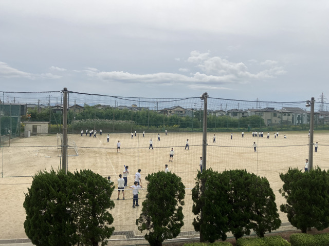 体育の授業の様子です。 気温がぐっと下がりましたが、グラウンドではソフトボールに熱中している生徒の姿が見られました。内野中の生徒は体育の授業が大好きです。