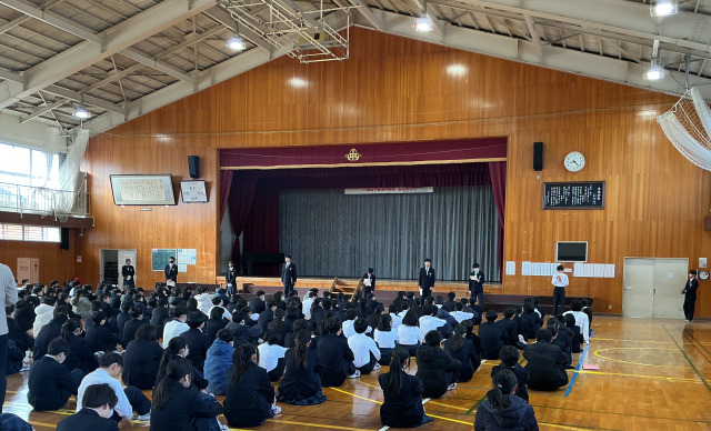 3年生の卒業を翌日に控え、三送会を行いました。 2年生の生徒会本部役員および学年委員が企画しました。タイトルは『笑って旅立て~三送会2026~』。これまで一生懸命準備してきました。 最 …