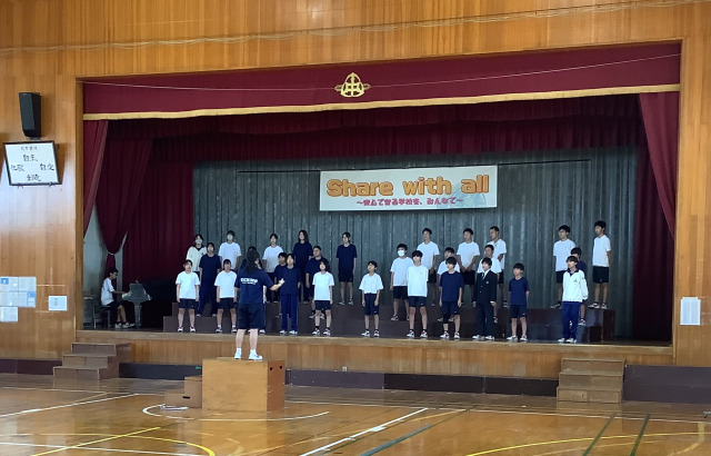 1年生は初めての合唱練習で少し緊張した様子でしたが、徐々に声も出て、きれいなハーモニーを響かせていました。
