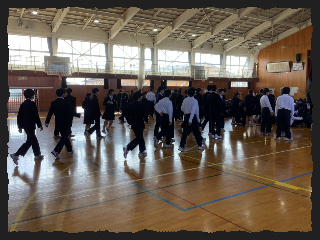 放送を聞いて、急いでクラスごとに体育館へ避難しました。