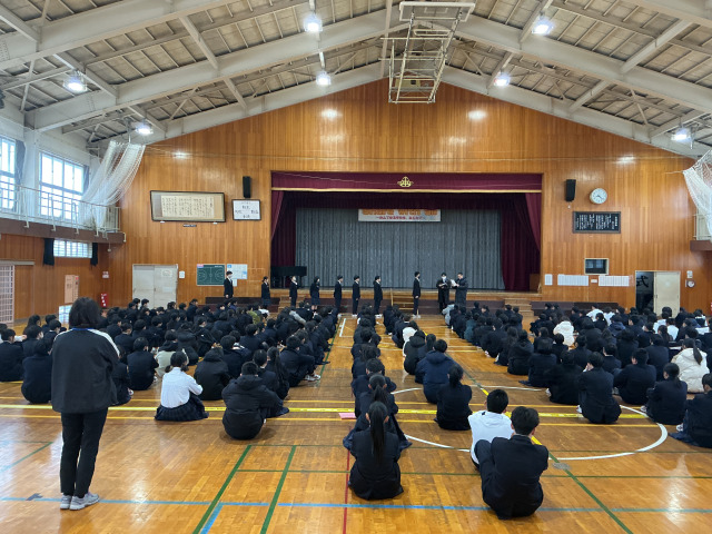 クラス対抗で行い、縄を回す生徒も、跳ぶ生徒も、真剣に取り組んでいました。縄にひっかかってしまっても、お互い励まし合いながら、とても楽しそうに過ごしていました。クラスの団結力が高まりました。