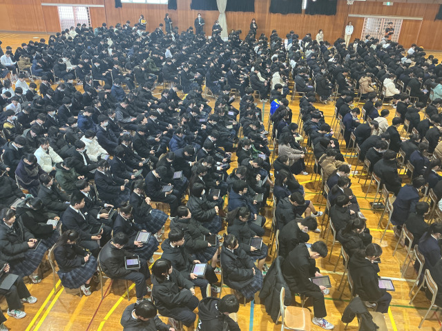 生徒はタブレットで議案書を見ながら参加しました。